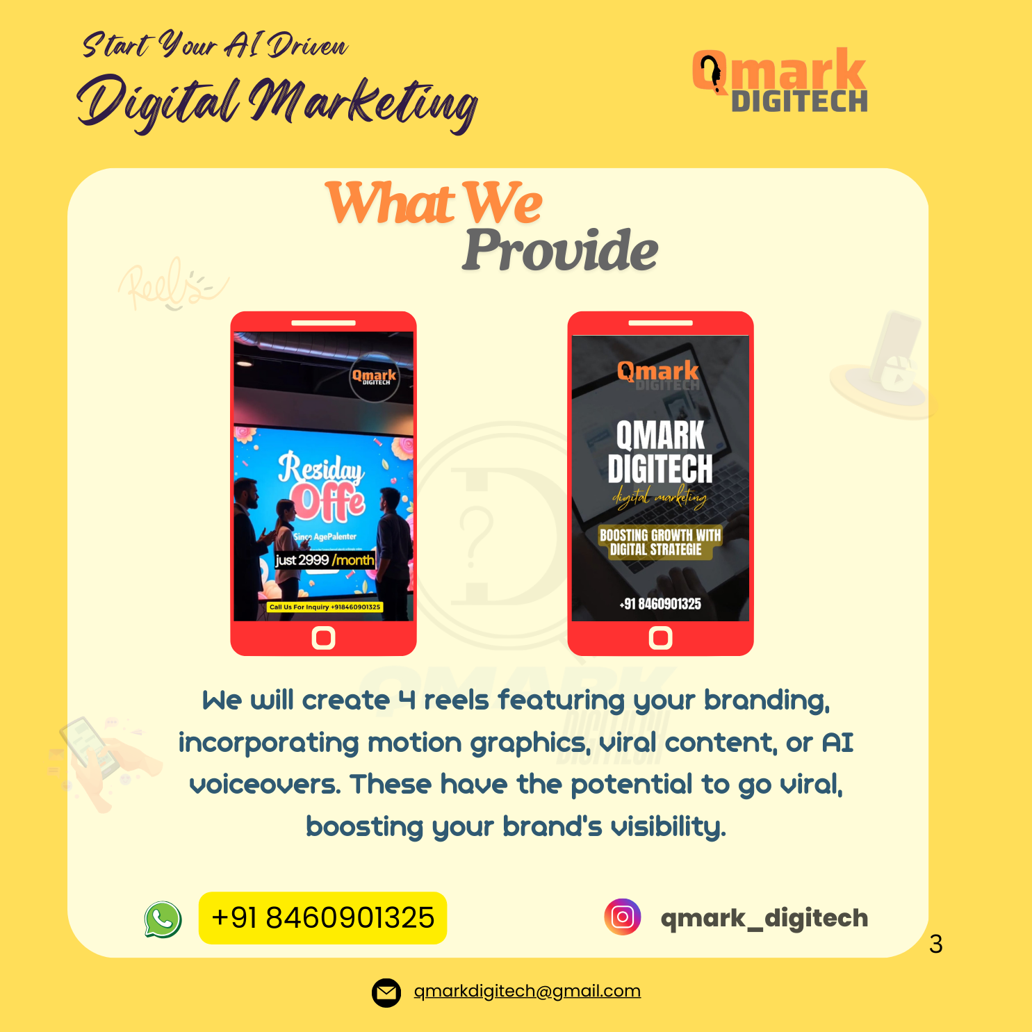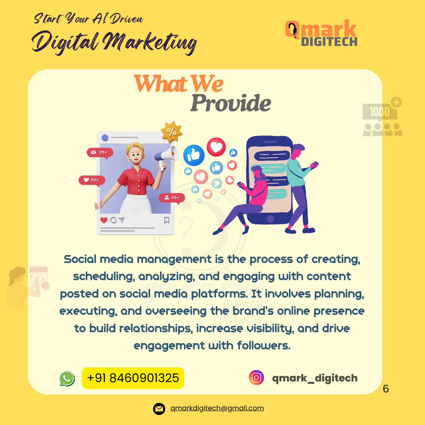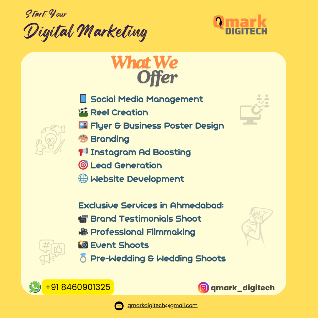 At Qmark Digitech, we believe in creativity, innovation, and data-driven results. Our mission is to help businesses unlock their full potential through smart, effective digital marketing. With expertise in social media, branding, AI-powered business strategies, and paid ads, we ensure that your brand doesn’t just exist online – it thrives!